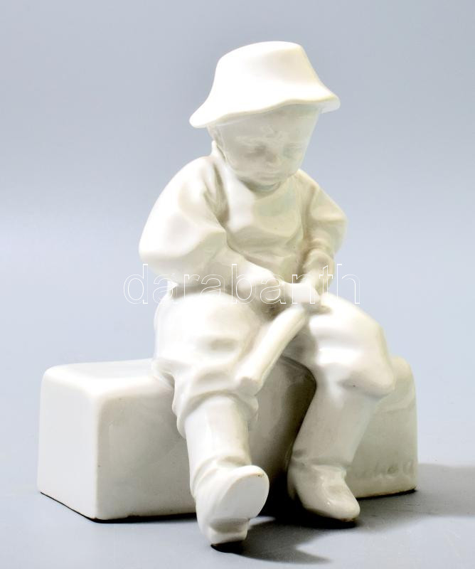 Beschreibung: Zsolnay botot faragó fiú, jelzett, fehérmázas, hibátlan, m: 13,5 cm