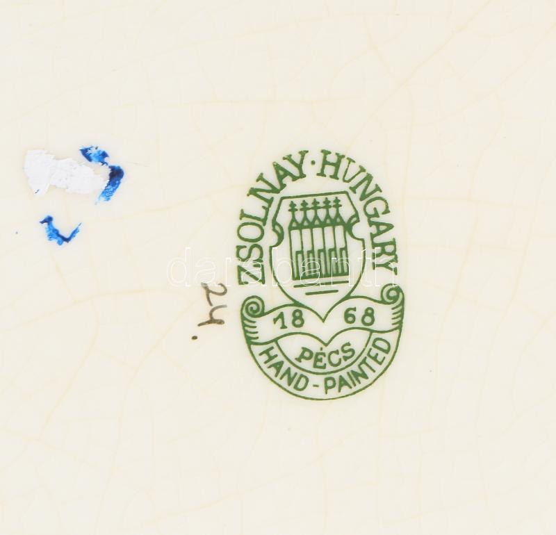 Zsolnay tálka, kézzel festett, jelzett, kopással d: 10 cm https://www.darabanth.com/de/506-Fernauktion/506.0/Porzellan-Keramik-Glass/Porzellan~632/Zsolnay-talka-kezzel-festett-jelzett-kopassal-d-10-cm~II3418775