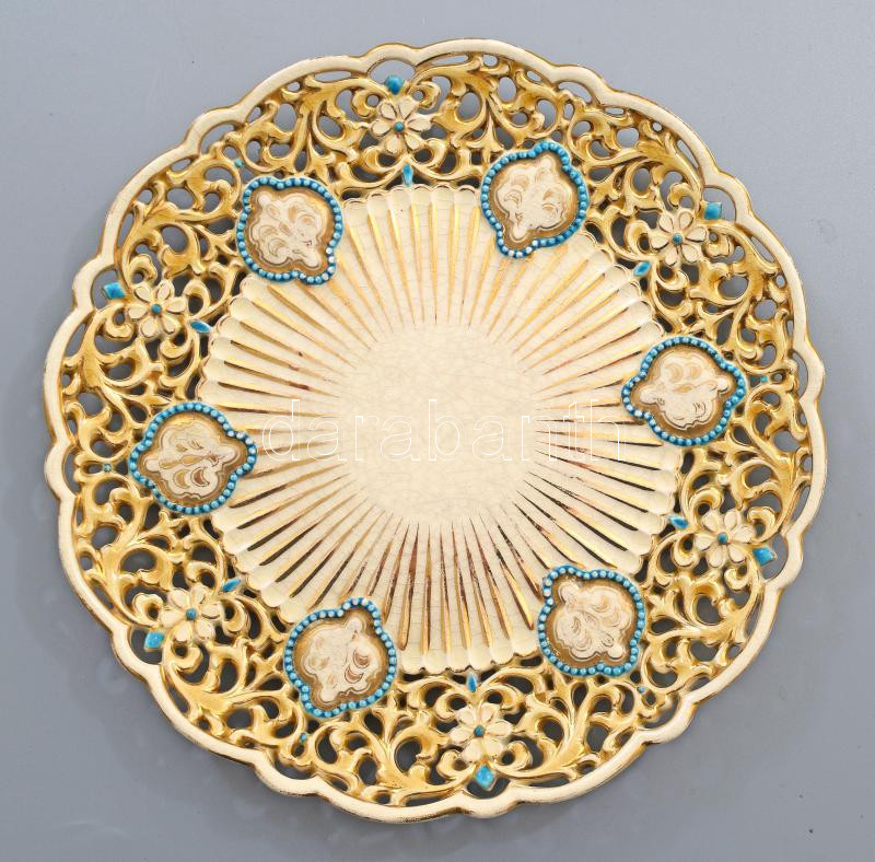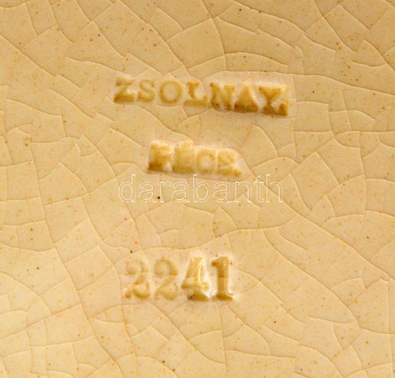 cca 1885 Zsolnay dísztál arabos dekorral. Többszínű mázzal bevont koro... https://www.darabanth.com/de/506-Fernauktion/506.0/Porzellan-Keramik-Glass/Porzellan~632/cca-1885-Zsolnay-disztal-arabos-dekorral-Tobbszinu-mazzal-bevont-korongozott-fehercserep-C3~II3423650