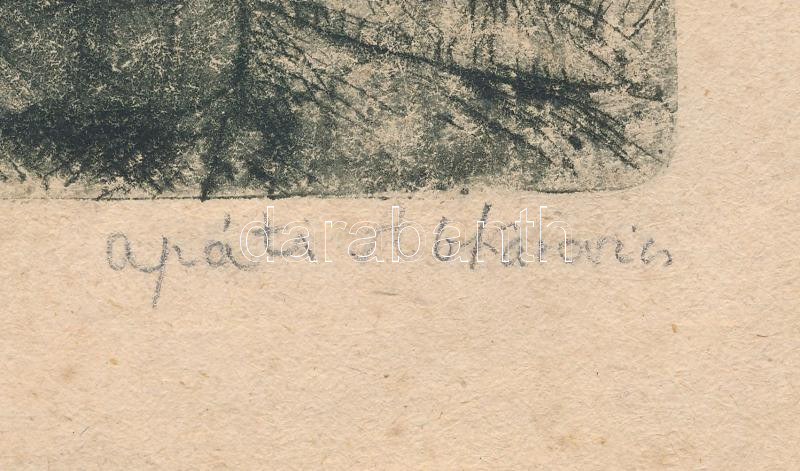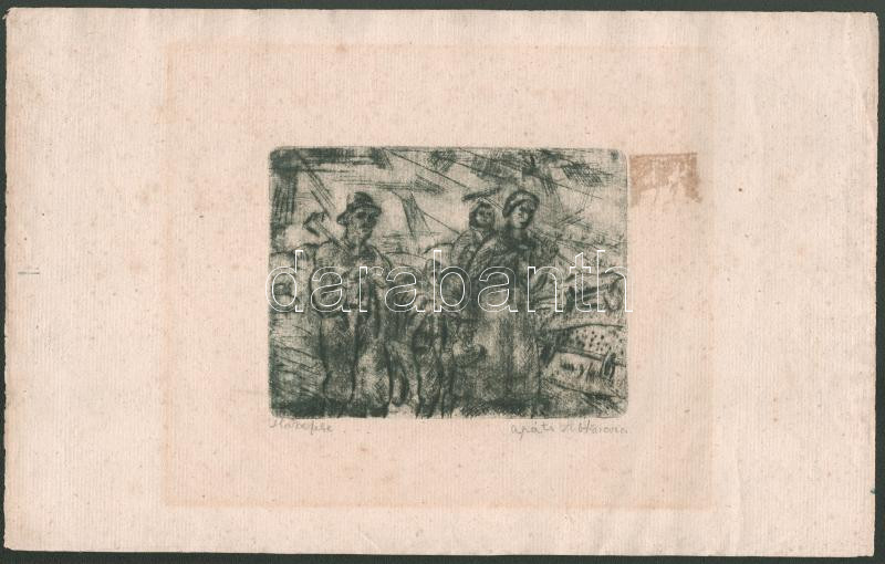 Beschreibung: Apáti Abkarovics Béla (1888-1957): Hazafelé. Rézkarc, papír, jelzett, kissé foltos, 12×16 cm
