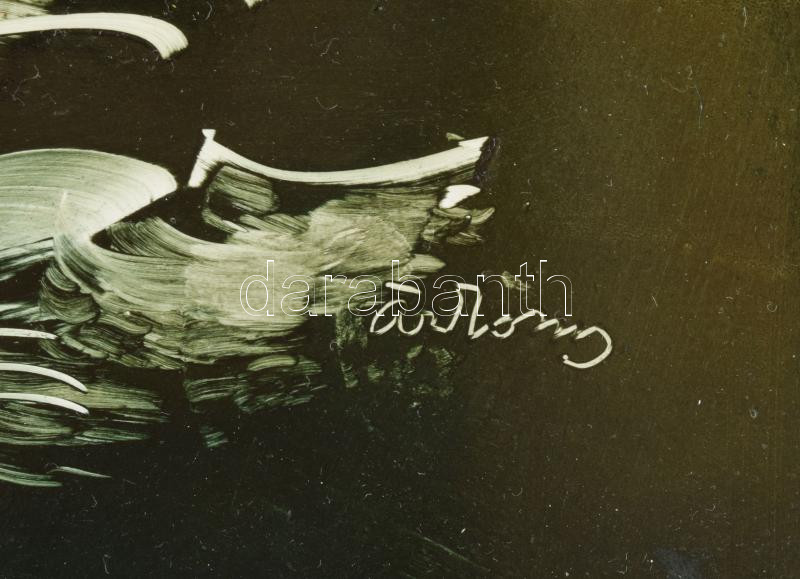 Beschreibung: Árkossy István (1943-): Leányarc. Olaj, farost, jelezve jobbra lent, hátoldalán Budapesti Képzőművészeti Kft. címkéjével. Dekoratív fakeretben, 30×40 cm.