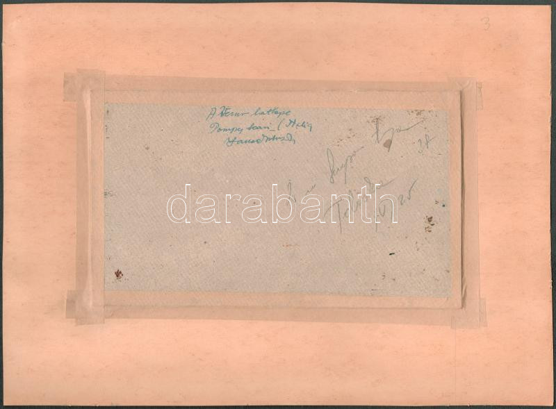 Jaksa István (1894-1982): A Vezúv látképe, Pompeji. Olaj, karton, jelzett, hátoldalán Jaksa István autográf feliratával és ajándékozási soraival. Paszpartuban, 14x24,5 cm