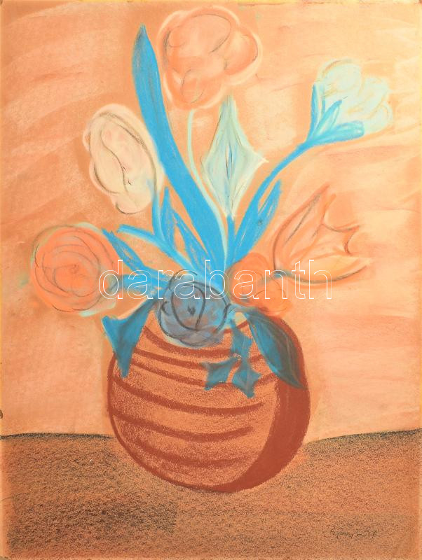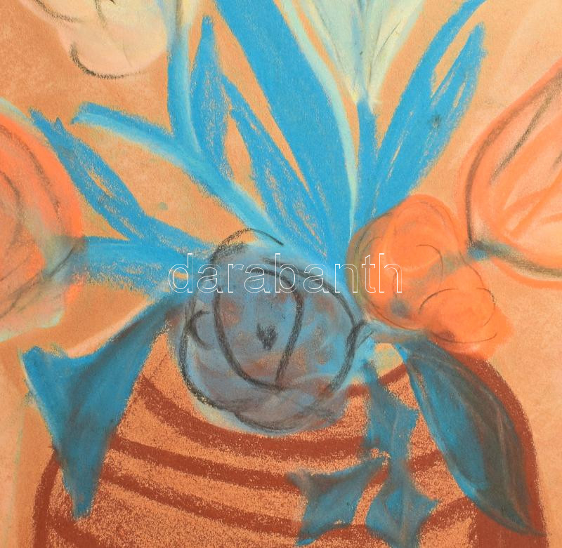 Beschreibung: Olvashatatlan jelzéssel (Egry József?): Csendélet. Pasztell, papír. Kartonra kasírozva. 58×44 cm.
