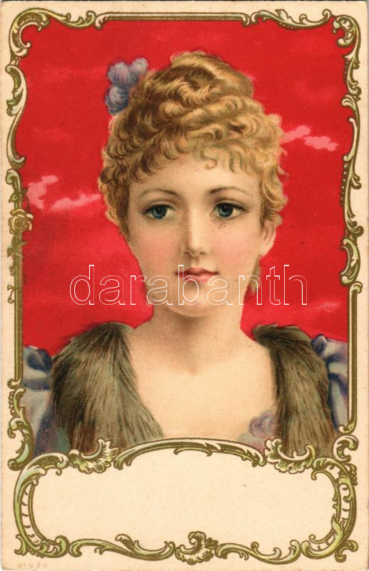 Beschreibung: Lady art postcard. Art Nouveau frame, litho (EK)