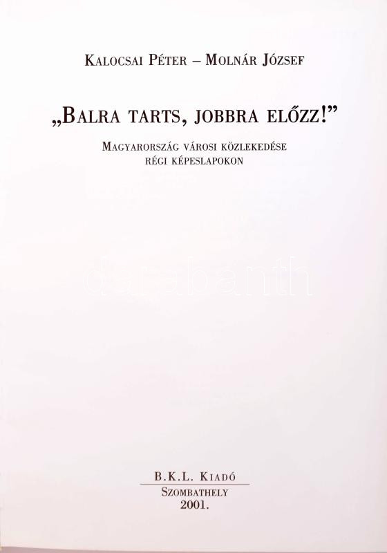 Kalocsai Péter - Molnár József: "Balra tarts, jobbra előzz!". Magyarország városi közlekedése régi képeslapokon. Szombathely, 2001, B.K.L., kartonált papírkötés.