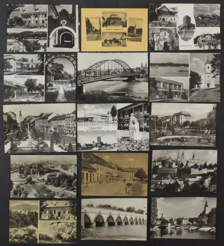 300 db MODERN magyar fekete-fehér város képeslap, futott és posztatiszta lapok vegyesen, 1 forintos lapok is, kisebb települések (~1950-1970) / 300 MODERN Hungarian black and white town-view postcards, used and unused cards mixed, smaller towns