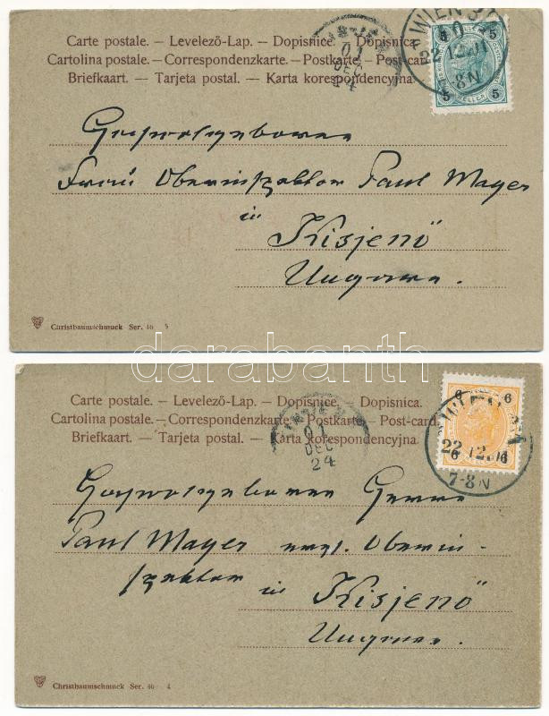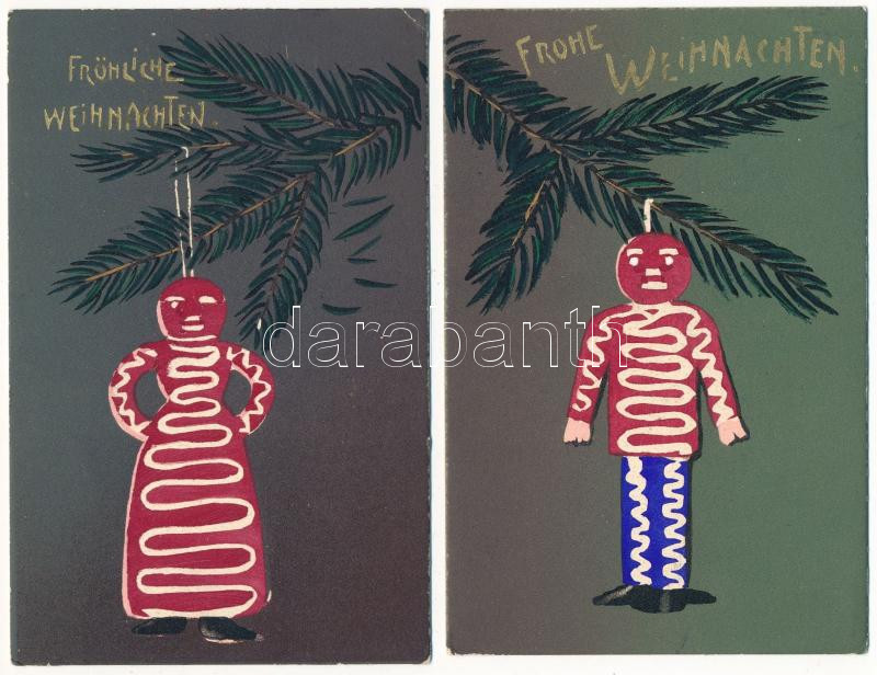 1901 2 db RÉGI (1905 előtti) német karácsonyi üdvözlőlap, karácsonyfadísz pár. Christbaumschmuck Serie 46. 4, 5. / 2 pre-1905 German Christmas greeting art postcards