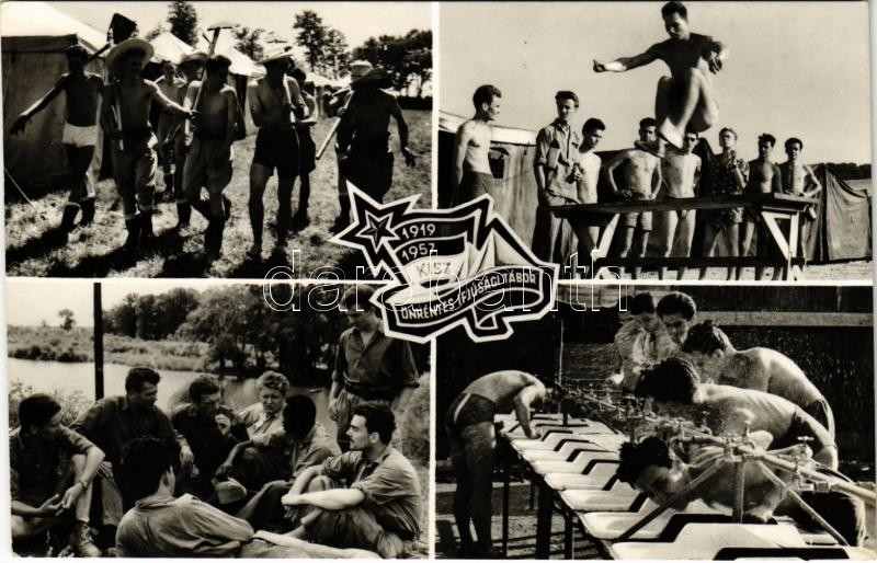 Beschreibung: 1919-1957 KISZ Önkéntes Ifjúsági Tábor. Képzőművészeti Alap Kiadóvállalat / Hungarian Young Communist League propaganda, youth camp