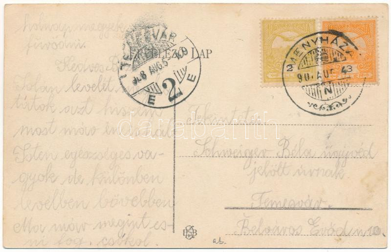 1908 Menyháza, Monyásza, Moneasa; Paradeiser villák, kisvasút, vasútállomás, gőzmozdony, vonat / villas, light railway station, locomotive, train (gyűrődés / crease)
