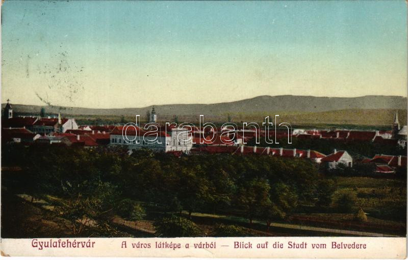 1912 Gyulafehérvár, Karlsburg, Alba Iulia; A város látképe a várból. S... https://www.darabanth.com/de/508-Fernauktion/508.0/Ansichtskarten/Siebenburgen~582/1912-Gyulafehervar-Karlsburg-Alba-Iulia-A-varos-latkepe-a-varbol-Schaser-Ferenc-kiadasa~II2801087