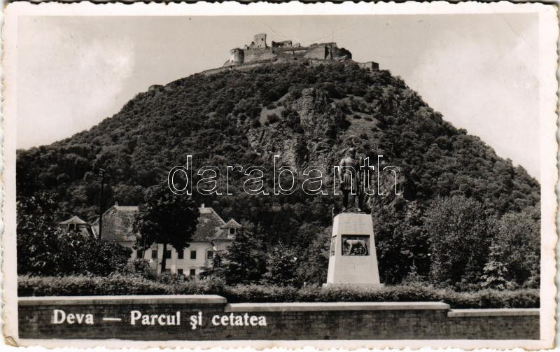 Déva, Deva; Pacul si cetatea / Park és várrom / castle ruins, park, mo... https://www.darabanth.com/de/508-Fernauktion/508.0/Ansichtskarten/Siebenburgen~582/Deva-Deva-Pacul-si-cetatea-Park-es-varrom-castle-ruins-park-monument-statue-fa~II2801132
