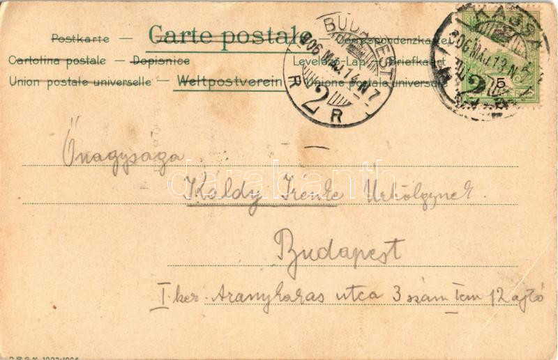 1906 Kassa, Kosice; Dóm és Orbán torony. Nyulászi Béla kiadása, szeces... https://www.darabanth.com/de/508-Fernauktion/508.0/Ansichtskarten/Slowakei~583/1906-Kassa-Kosice-Dom-es-Orban-torony-Nyulaszi-Bela-kiadasa-szecesszios-viragos-litho-ke~II3439658