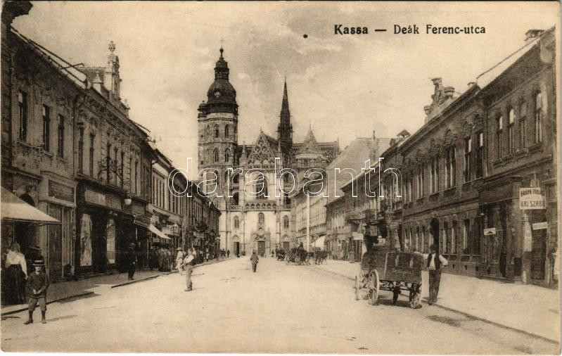 1917 Kassa, Kosice; Deák Ferenc utca, Brück Tóbiás angol úri szabó, Ra... https://www.darabanth.com/de/508-Fernauktion/508.0/Ansichtskarten/Slowakei~583/1917-Kassa-Kosice-Deak-Ferenc-utca-Bruck-Tobias-angol-uri-szabo-Rado-Belane-uzlete-e~II3404883