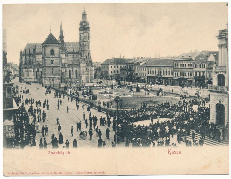Kassa, Kosice; Szabadság tér, dóm, üzletek. titkosírással írva. 2-rész... https://www.darabanth.com/de/508-Fernauktion/508.0/Ansichtskarten/Slowakei~583/Kassa-Kosice-Szabadsag-ter-dom-uzletek-titkosirassal-irva-2-reszes-kihajthato-panora~II3437943