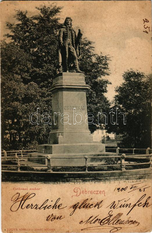 1900 Debrecen, Csokonai szobor. Römmler und Jonas (Dresden) (fl) https://www.darabanth.com/de/508-Fernauktion/508.0/Ansichtskarten/Ungarn~581/1900-Debrecen-Csokonai-szobor-Rommler-und-Jonas-Dresden-fl~II3404898