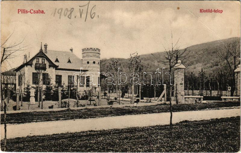 1908 Piliscsaba, Klotild-telep, villa. Rigócz József kiadása (EB) https://www.darabanth.com/de/508-Fernauktion/508.0/Ansichtskarten/Ungarn~581/1908-Piliscsaba-Klotild-telep-villa-Rigocz-Jozsef-kiadasa-EB~II3442479