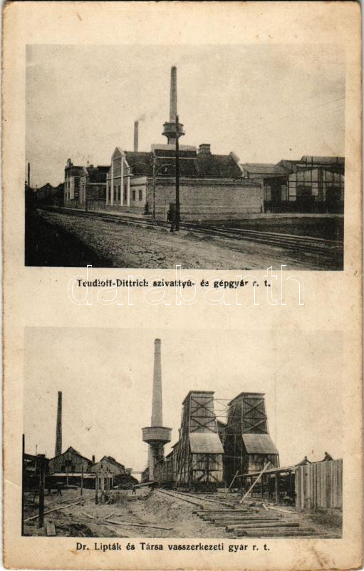Beschreibung: Budapest XIX. Kispest, Teudloff-Dittrich szivattyú- és gépgyár rt., Dr. Lipták és Társa vasszerkezeti gyár rt. (EB)