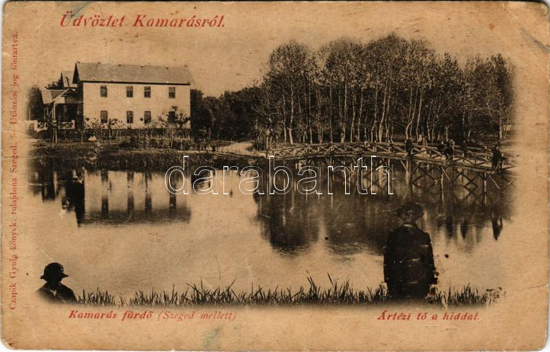 Horgos, Kamaráserdő; Artézi tó a híddal. Czapik Gyula kiadása / lake, ... https://www.darabanth.com/de/508-Fernauktion/508.0/Ansichtskarten/Vojvodina~586/Horgos-Kamaraserdo-Artezi-to-a-hiddal-Czapik-Gyula-kiadasa-lake-bridge-lyukak-pinhole~II3437772