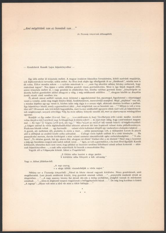 Kassák Lajos: Az idő múlásában. (Kassák Lajos képeskönyvének fakszimile kiadása, László Gyula kísérőszövegével). Bp., 1971, Képzőművészeti Alap, 12 p.+ 2 sztl. lev. Kiadói papírborítóban.