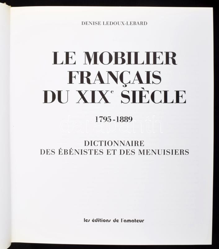 Ledoux-Lebard, Denise: Le mobilier francais du XIX' siécle 1795-1889. Dictionnaire des Ébénistes et des menuisiers. Paris, 2000. Kiadói egészvászon kötés, papír védőborítóval, jó állapotban.