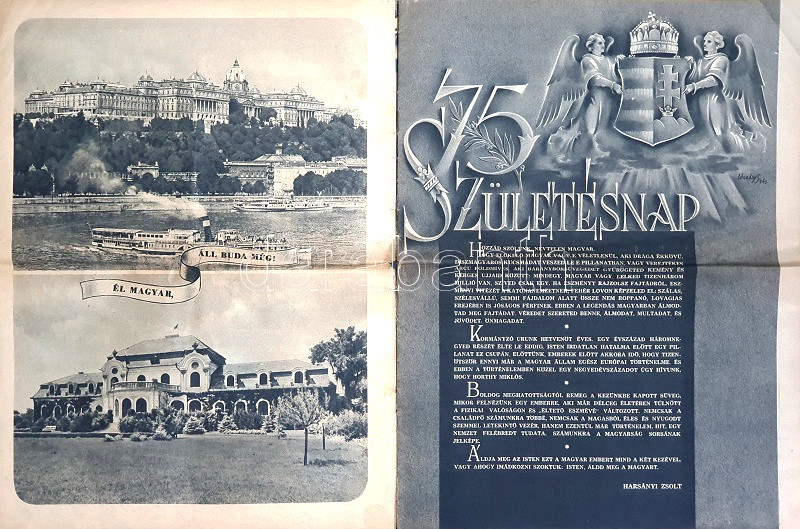 A Horthy Miklós kormányzó hetvenötödik születésnapja alkalmából kiadott, gazdagon illusztrált újságszám kiadói impresszum nélkül jelent meg, ám tipográfiájából, grafikai szerkesztésébÅ‘l, illetve Harsányi Zsolt közreműködésébÅ‘l adódóan lapszámunk feltehetÅ‘en a Pesti HÃrlap sajtókonszernjének kiadványa lehet. Lapszámunk oldalpárosokon kidolgozott képmontázsokon méltatja Horthy Miklóst, mint államférfit, családapát, mint a vitézi rend vezetÅ‘jét, mint hÃdavatót, vasút- és katedrális-átadót, diplomatát, országbÅ‘vÃtÅ‘t, hadurat, gazdát, sportbarátot és a munkások barátját.