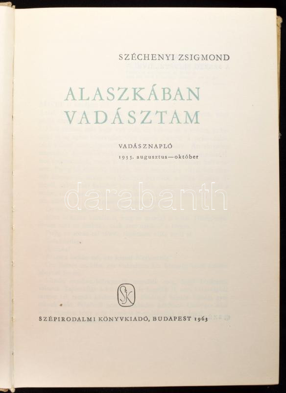 5 db könyv - Széchenyi Zsigmond: Alaszkában vadásztam; Szarvasok nyomá... https://www.darabanth.com/de/508-Fernauktion/508.0/Bucher/Bucher-Jagd~749/5-db-konyv-Szechenyi-Zsigmond-Alaszkaban-vadasztam-Szarvasok-nyomaban-Nahar-Denaturalt-A~II3436160