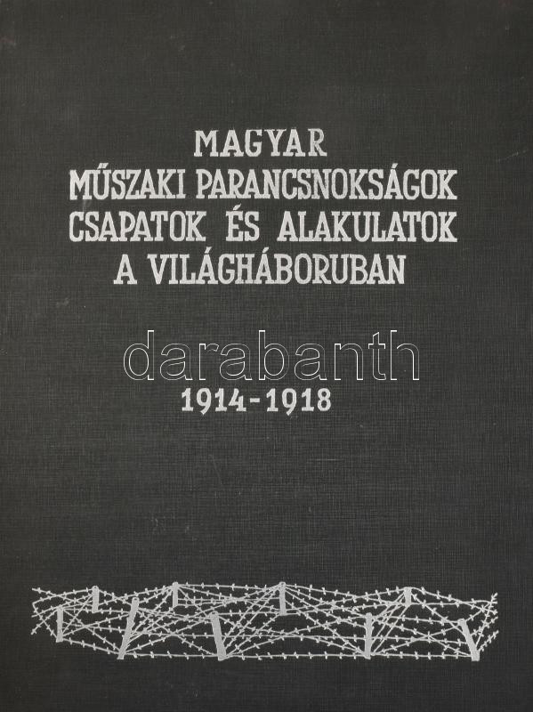 Jacobi Ágost (szerk.): Magyar műszaki parancsnokságok, csapatok és alakulatok a világháborúban. Bp., 1938, Közlekedési Nyomda Kft., 4 sztl. lev.+ 759 p. Gazdag fekete-fehér képanyaggal illusztrálva. Kiadói ezüstözött egészvászon-kötés, a gerincen kis sérülésekkel, belül a lapok nagyrészt jó állapotban.