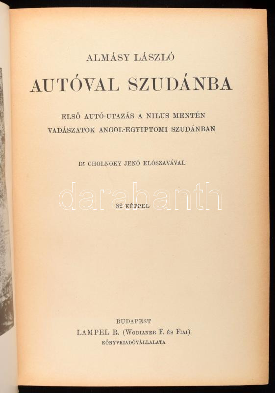 Almásy László (1895-1952): Autóval Szudánba. Első autó-utazás a Nílus mentén. Vadászatok Angol-Egyiptomi Szudánban. Cholnoky Jenő előszavával. 82 képpel.