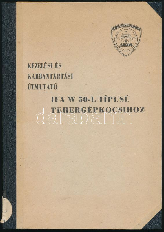 Kezelési és karbantartási útmutató IFA W 50-L típusú tehergépkocsihoz. Szerk.: Fornai Miklós, Porst György, Somogyi Gyula, Staudinger István. [Székesfehér], 1969, AKÖV,(Fejér m. Ny. V.-ny.), 66+1 p. + 2 t. Félvászon-kötésben, intézményi bélyegzésekkel.