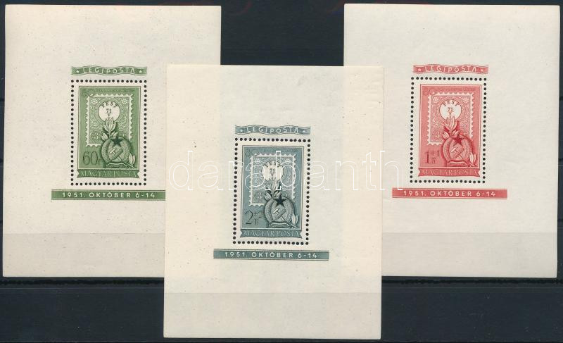 Beschreibung: 1951 80 éves a magyar bélyeg blokk sor (51.000) (60f, 2Ft betapadás nyomok / gum disturbance)