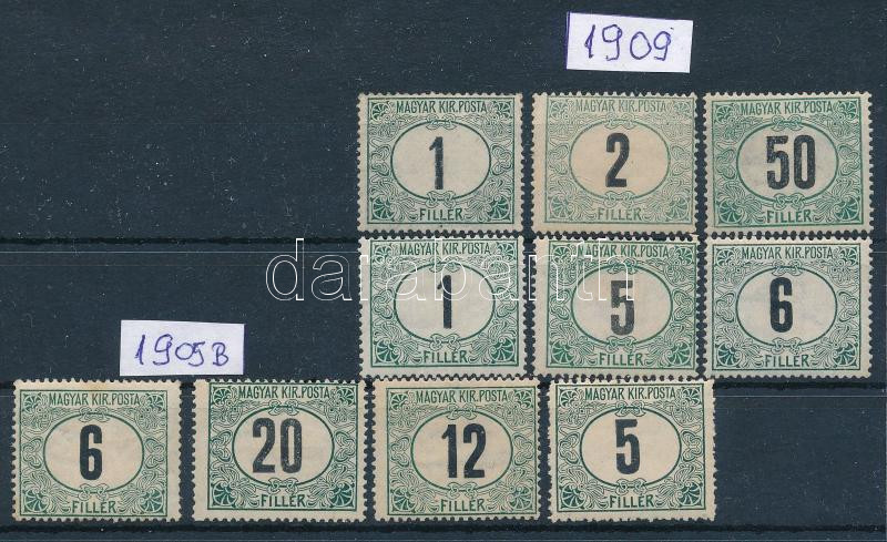 Beschreibung: 1905-1909 Zöldportó 10 db bélyeg vízjelállások szerint rendezve