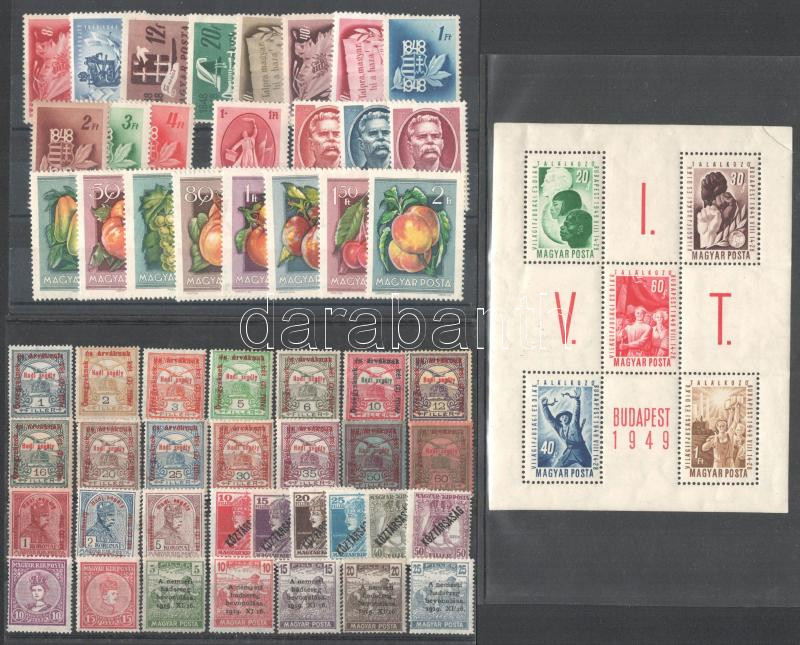 Beschreibung: 1915-1954 7 klf sor + önálló bélyeg + VIT blokk, 3 stecklapon
