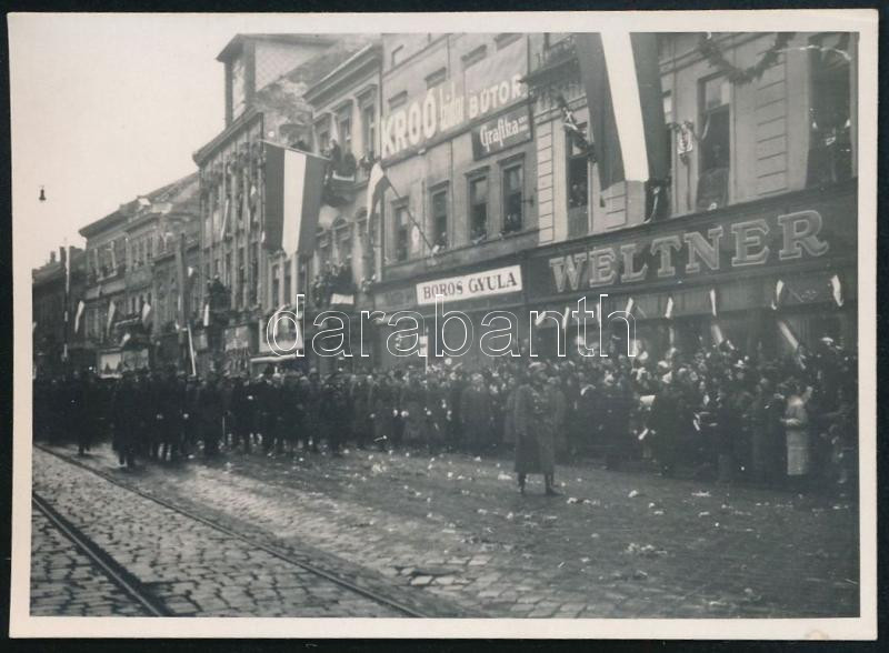 1938 Kassa, bevonulás, Boros Gyula, Weltner és Kroó Izidor üzletei, fo... https://www.darabanth.com/de/508-Fernauktion/508.0/Fotografie/Foto~683/1938-Kassa-bevonulas-Boros-Gyula-Weltner-es-Kroo-Izidor-uzletei-foto-6-5C3978-5-cm~II3437376