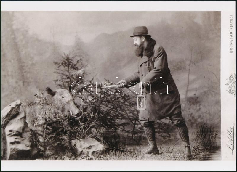 cca 1890 Brassó, Adler fényképész műtermében a bátor vadász, egy szál ... https://www.darabanth.com/de/508-Fernauktion/508.0/Fotografie/Foto~683/cca-1890-Brasso-Adler-fenykepesz-mutermeben-a-bator-vadasz-egy-szal-torrel-a-vadkan-elle~II3435555