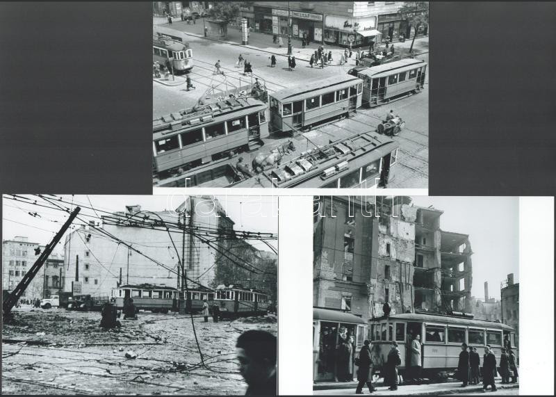 Beschreibung: cca 1960 előtt készült felvételek a budapesti villamosokról, 3 db modern nagyítás, jelzés nélkül, 15x21 cm