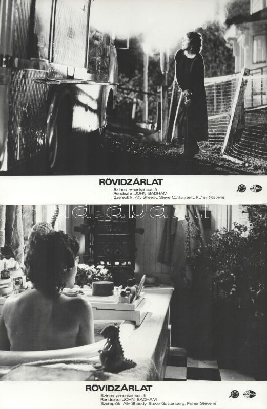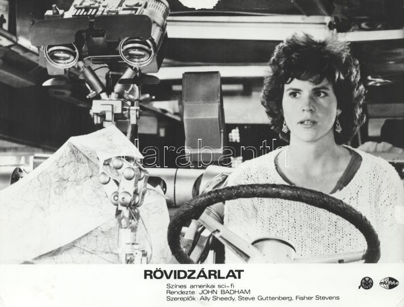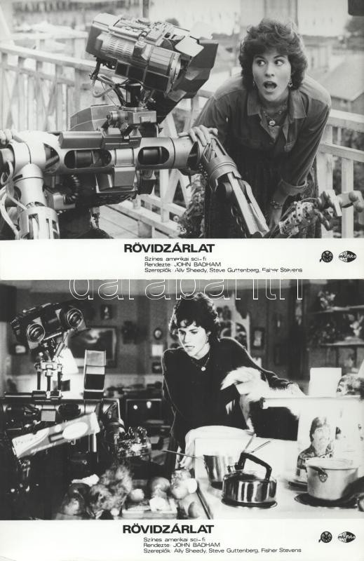 cca 1989 előtt készült, "Rövidzárlat" című amerikai sci-fi film jelenetei és szereplői, 7 db vintage produkciós filmfotó (vitrinfotó, lobbyfotó) ezüst zselatinos fotópapíron, a használatból eredő (esetleges) kisebb hibákkal, 18x24 cm