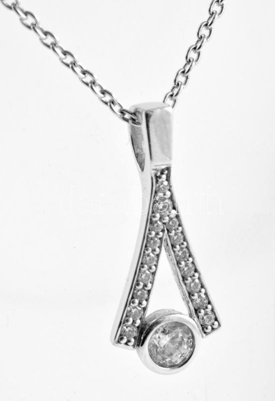 Beschreibung: 2019 Ezüst (Ag) ékszer szett, nyaklánc cirkóniás medállal és fülbevaló cirkónia kővel, bruttó 4,1g, eredeti katalógussal, limitált széria.