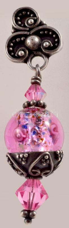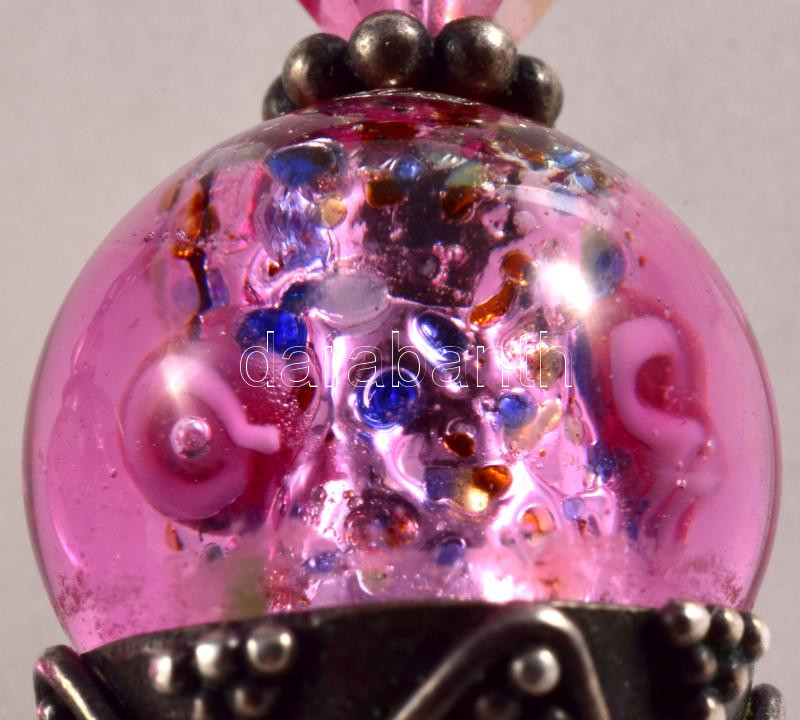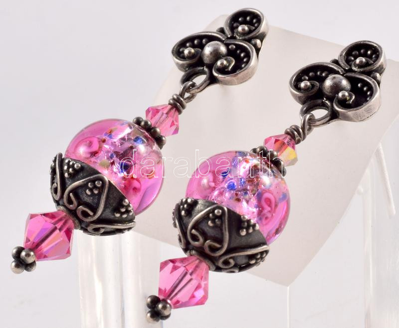 Beschreibung: Pink díszítményes ezüst (Ag) fülbevaló pár, jelzés nélkül, bruttó 10,4g