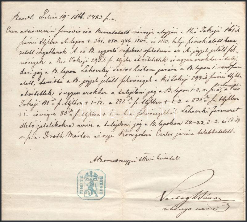 1866 Kistokaji földrészlet adásvételi szerződése 50kr illetékbélyeggel https://www.darabanth.com/de/508-Fernauktion/508.0/Kunst-Dokumente-andere-Sammelgebiete/Dokument~679/1866-Kistokaji-foldreszlet-adasveteli-szerzodese-50kr-illetekbelyeggel~II3435514