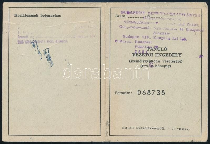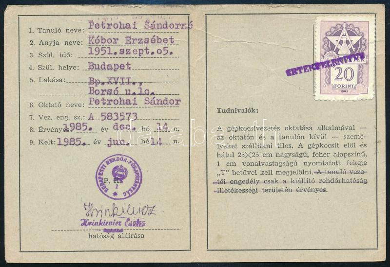 1985 Bp., Autós tanulóvezetői igazolvány https://www.darabanth.com/de/508-Fernauktion/508.0/Kunst-Dokumente-andere-Sammelgebiete/Dokument~679/1985-Bp-Autos-tanulovezetoi-igazolvany~II3440692