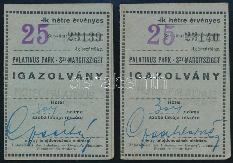 cca 1920 Szent Margitsziget, Palatinus Park igazolvány, 2 db sorszámkö... https://www.darabanth.com/de/508-Fernauktion/508.0/Kunst-Dokumente-andere-Sammelgebiete/Dokument~679/cca-1920-Szent-Margitsziget-Palatinus-Park-igazolvany-2-db-sorszamkoveto~II3437321