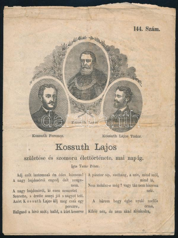 Beschreibung: 1866 Pest, Kossuth Lajos születése és szomorú élettörténete, mai napig, írta: Tatár Péter, 144. szám, 7p