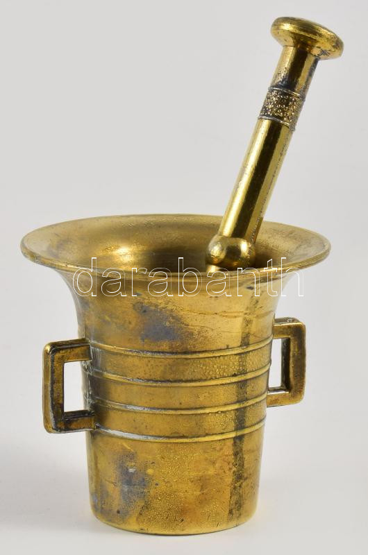 Bronz mozsár, törővel, m: 7 cm, törő h: 12,5 cm https://www.darabanth.com/de/508-Fernauktion/508.0/Kunst-Dokumente-andere-Sammelgebiete/Flohmarkt~854/Bronz-mozsar-torovel-m-7-cm-toro-h-12-5-cm~II3435643