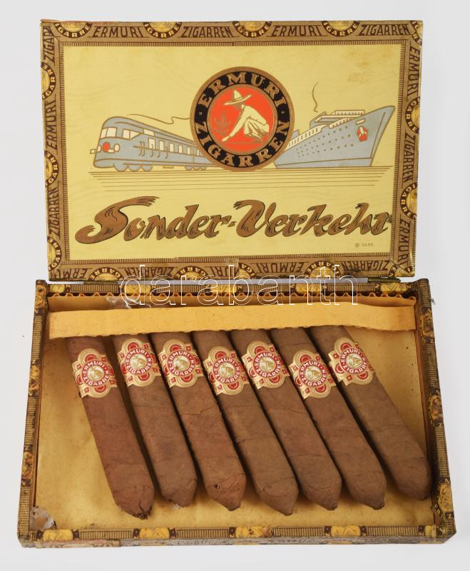 Ermuri Sonderverkehr szivar, doboz, tartalommal 18x12 cm https://www.darabanth.com/de/508-Fernauktion/508.0/Kunst-Dokumente-andere-Sammelgebiete/Flohmarkt~854/Ermuri-Sonderverkehr-szivar-doboz-tartalommal-18x12-cm~II3443735