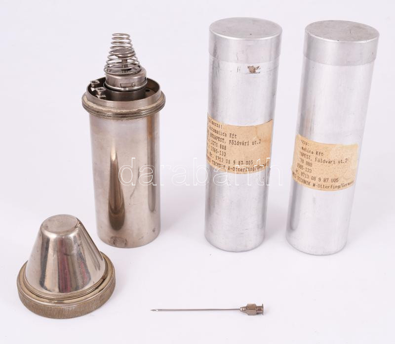 Régi fém orvosi fecskendők és tűk + konténerek https://www.darabanth.com/de/508-Fernauktion/508.0/Kunst-Dokumente-andere-Sammelgebiete/Flohmarkt~854/Regi-fem-orvosi-fecskendok-es-tuk-plus-kontenerek~II3444036