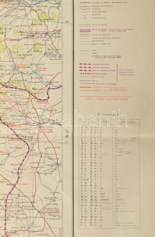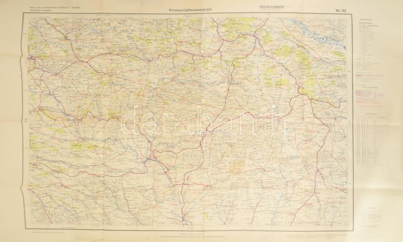 1939 Karte des europäischen Rußland Nr. 32, Kirowo (Jelissawetgrad) / Kirovohrad (korábban Jeliszavethrad, ma Kropivnickij, Ukrajna) térképe, 1 : 300.000, nagyméretű térkép, kisebb foltokkal, sérülésekkel, ragasztott, 81x114 cm