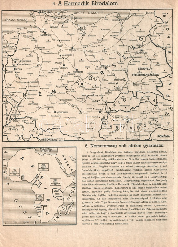 Összesen 40 térképet számláló földrajzi atlaszunk a háborúba keveredett országokat 1941. augusztus 1-jei határai szerint ábrázolja. Magyarország ennek megfelelően a két bécsi döntéssel, a kárpátaljai és délvidéki bevonulásokkal megnövekedett területtel bír, közvetlen szomszédjaink Szlovákia, Románia, Horvátország és a volt Jugoszlávia rendezés alatt levő területei. Nem sok jót sejtetően két nagyhatalommal is, a Harmadik Birodalommal és a Szovjetunióval is voltak ez idő szerint közös határaink. Jóllehet az 1941 júniusában megindult Barbarossa-terv nyomán a német hadak térképünk készülte idejére már igen mélyen benyomultak a Szovjetunió területére, atlaszunk térképei a két totalitárius hatalom közti választóvonalat, a német-szovjet határt változatlanul 1939 végi állapota szerint közli, Hollandia, Belgium és Franciaország 1940. évi német megszállását pedig egyáltalán ábrázolja atlaszunk. Háborús atlaszunk célzata ugyanis más: a már kialakult hadszínterek térképein az olvasó törölhető színes ceruzával maga húzhatja be az aktuális frontvonalakat, illetve az utolsó oldalon elhelyezett, körbevágásra váró német, magyar, olasz, finn, angol, szovjet [és amerikai!] seregjelölők segítségével maga is elbábozhatja a hadak éppen aktuális mozgását. Az amerikai seregjelölők jelenléte miatt háborús albumunk kiadási időpontját 1942 közepére tesszük, figyelembe véve az Egyesült Államok és Németország között 1941 decemberében beállt hadiállapotot, illetve a kaukázusi térképnél tett megjegyzést, amely a Kaukázus előterében győzelmes német előretörést jósol a közeljövőben: 1942 nyarán erre reális esély mutatkozott.
