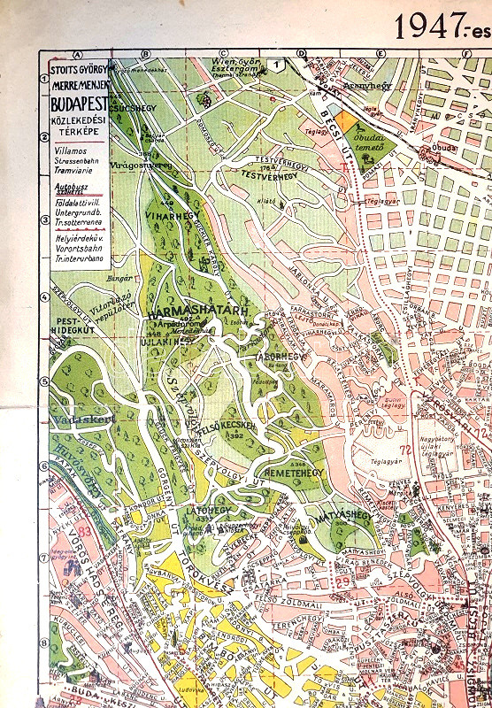 [Térkép] Budapest közlekedési térképe. 1947-es kiadás, teljes utcanévjegyzékkel. Stoits György "Merre menjek?" sorozatából.