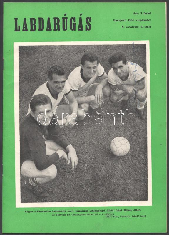 Beschreibung: 1961 A Labdarúgás című újság VII. évfolyamának 6. száma, rajta Fenyvesi Máté (1933-2022) labdarúgó aláírása + 2 db fotó róla