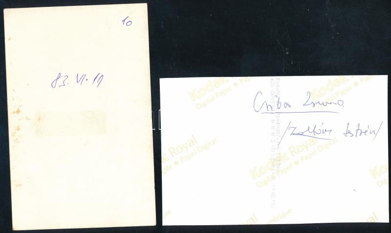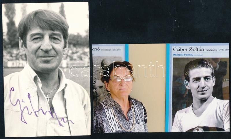Beschreibung: Czibor Zoltán (1929-1997) az Aranycsapat labdarúgójának aláírása az őt ábrázoló képen és testvérének Czibor Zsuzsának fotója